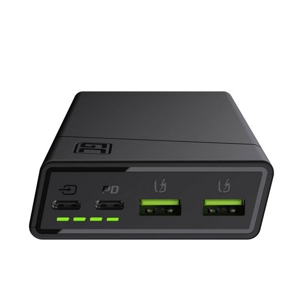Green Cell Power Bank Lithium Polymer (LiPo) 20000 mAh, 2 USB-A, 2 USB-C, Black
