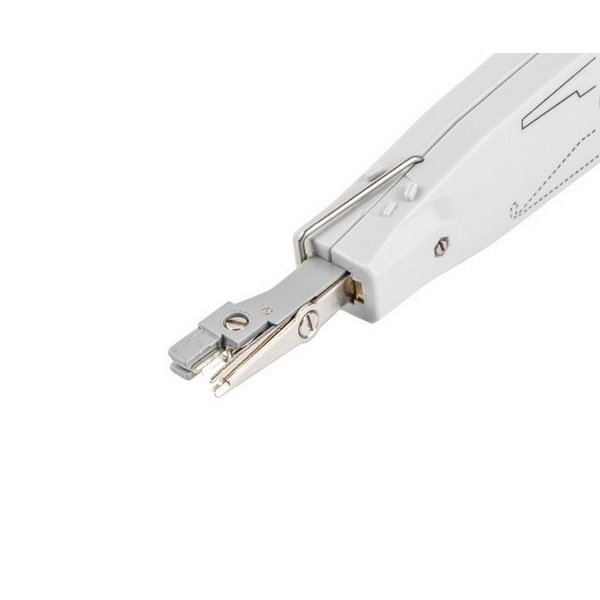 Kjo vegël punch down vjen në ngjyrën të bardhë me dizenjim ergonomik dhe të lehtë në dorë. Mbajtësi i rehatshëm redukton lodhjen gjatë instalimeve të gjata dhe të shumta. Ideal për instalime në rack, pllaka muri dhe ambiente të kufizuara.