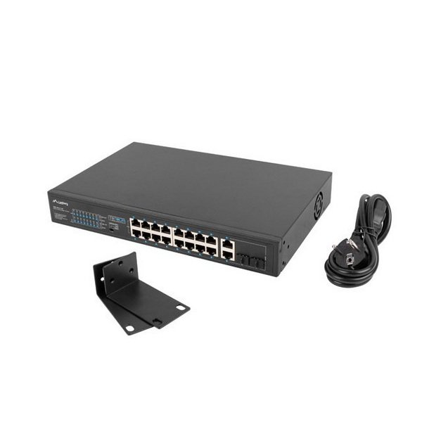 Lanberg RSFE-16P-2C-150 Switch PoE+ është switch profesional unmanaged me 16 porta PoE+ 100MB, 2 porta Gigabit Uplink dhe 1 porta SFP; zgjidhja ideale për infrastruktura rrjeti të mesme dhe të mëdha me kamera IP, akses pointe dhe telefona VoIP.