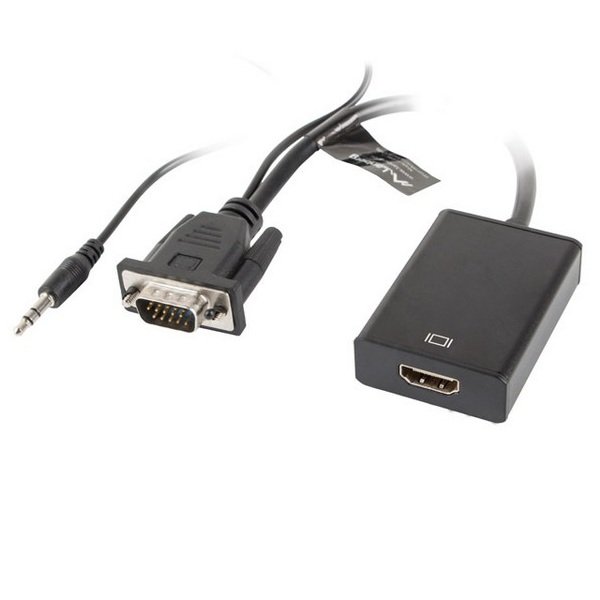 Lanberg VGA Audio to HDMI Adapter kombinon sinjalin analog VGA (M) dhe audio minijack 3.5mm (M) dhe i konverton në sinjal dixhital HDMI (F) – video dhe zë në një kabllo të vetme. Ideal për: