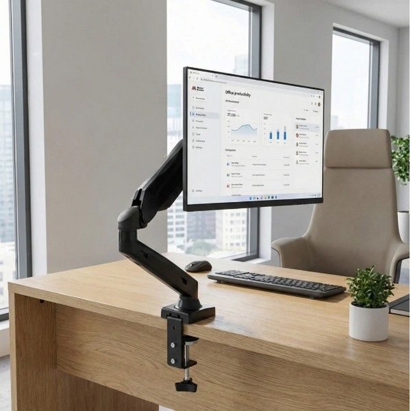 Maclean MC-860 Monitor Desk Mount është mbajtësja profesionale e monitorit për tavolinë me krah 68.6cm – zgjidhja ideale për setup ergonomik dhe profesional me monitor 13-27″ në Tiranë dhe Shqipëri.