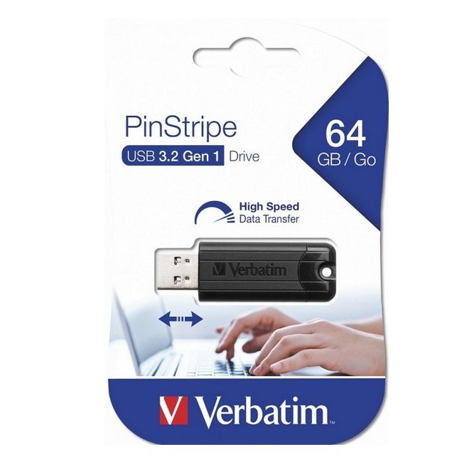 Verbatim Flash Drive 64GB/USB 3.0/Pinstripe, Black
